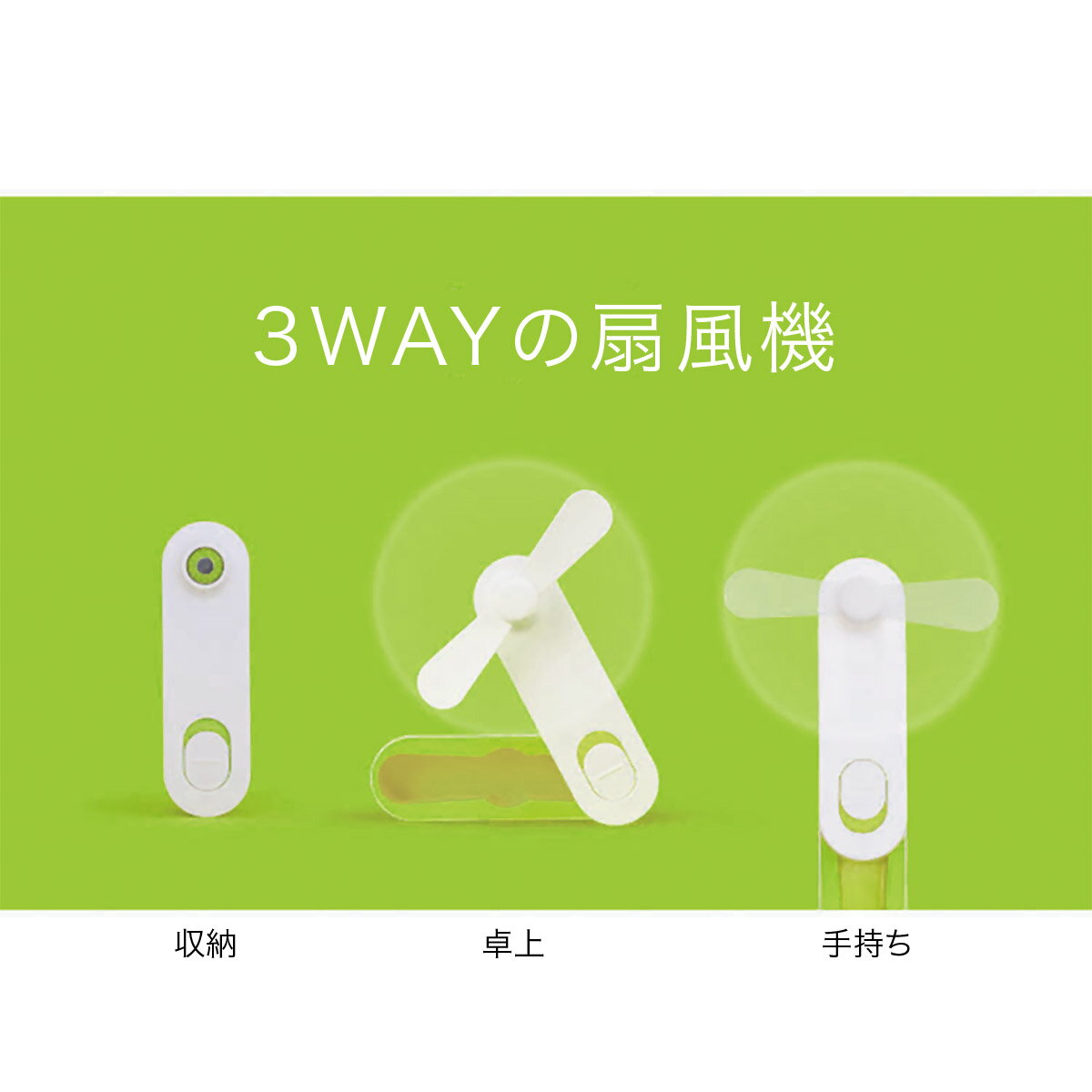 プロペラ収納 USBミニ扇風機プロペラが収納出来て、携帯用に最適収納・卓上・手持ちの3WAY軽くてコンパクトで持ち運びに便利USB充電で充電時間約1時間で、約3時間使用できます。
